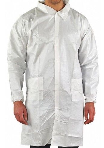 Camice monouso in polipropilene, con bottoni e due tasche.