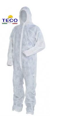 - Tuta PLP 40 gr. bianca, con cappuccio, chiusura cerniera, elastico ai polsi e caviglie