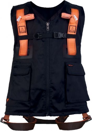 Imbracatura con gilet da lavoro nero integrato per lavorare in sicurezza.