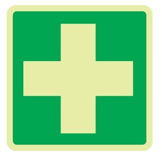 Cartello Luminescente bifacciale in All. 155x155 mm CASSETTA DI MEDICAZIONE (FONDO VERDE)