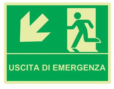 Cartello Luminescente in All. 210x160 mm USCITA DI EMERGENZA CON FRECCIA IN BASSO A SX