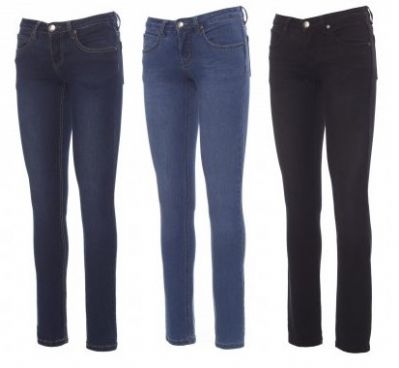 Pantalone donna, taglio jeans a cinque tasche, chiusura con zip in metallo e bottone, passanti in vita, stone wash, effetto consumato e delavé. Cuciture a filo grosso a contrasto, doppie cuciture interno gamba, gamba a tubo, borchiette e patch in vera pelle.
