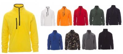 Pile, mezza zip 8mm in plastica nera, manica raglan, coulisse regolabile in vita, elastici stringi polso, due tasche con zip coperte, una tasca frontale con zip, collo con bordatura di rinforzo in contrasto, cuciture rinforzate.