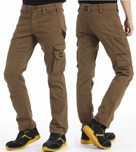 Jeans multitasche, vita alta, doppia cintura interna con elastico "antiscivolo", patta con zip, vestibilità comoda, tasca per cellulare, gamba dritta con clip sul ginocchio, twill di Fibreflex.