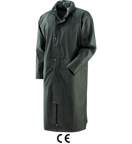 Cappotto lungo antipioggia, realizzato con una speciale mescola di PVC e poliuretano, spalmata su un supporto in poliestere. Un prodotto tenace e resistente, ma al tempo stesso morbido, flessibile e leggero. E' ideale da indossare per le attività all'aperto, anche se impegnative e svolte in presenza di sporcizia. Offre comfort ed una protezione ai massimi livelli della gamma.