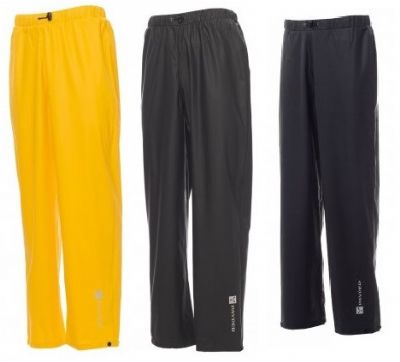 Pantalone antipioggia. coulisse ed elastico in vita, fonda gamba regolabile con bottone automatico, cuciture termosaldate.
