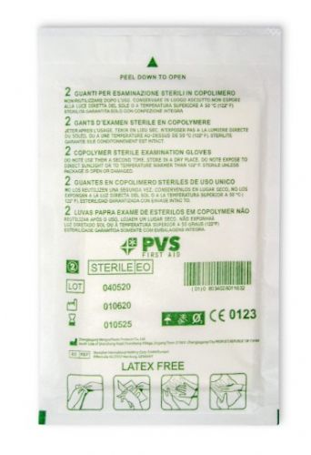 REPERTORIO DISPOSITIVI MEDICI Ministero della Salute nr. 1758790 classificazione CND TO199. Paio guanti sterili in copolimero latex free. Taglia: M, L.