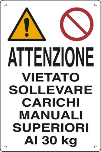Cartello in polionda cm 60x40 ATTENZIONE VIETATO SOLLEVARE CARICHI MANUALI SUPERIORI AI 30 KG