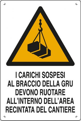 Cartello in polionda cm 60x40 I CARICHI SOSPESI AL BRACCIO DELLA GRU DEVONO ...