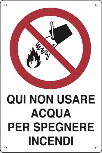Cartello in polionda cm 60x40 QUI NON USARE ACQUA PER SPEGNERE INCENDI