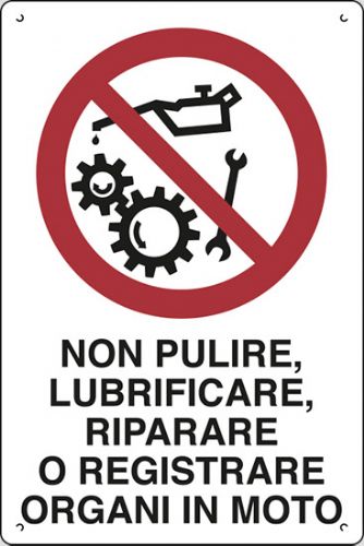 Cartello in polionda cm 60x40 NON PULIRE, LUBRIFICARE, RIPARARE O REGISTRARE ORGANI IN MOTO