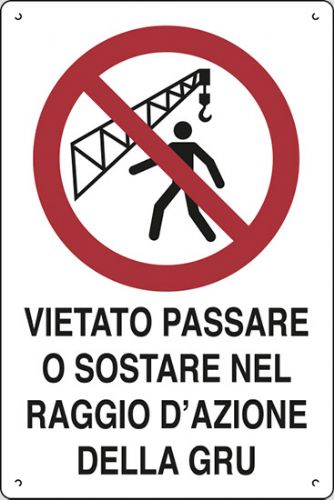 Cartello in polionda cm 60x40 VIETATO PASSARE O SOSTARE NEL RAGGIO D'AZIONE DELLA GRU