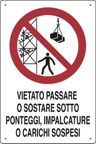 Cartello in polionda cm 60x40 VIETATO PASSARE O SOSTARE SOTTO PONTEGGI, IMPALCATURE O CARICHI SOSPESI