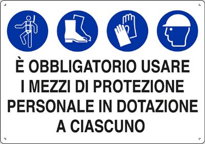 Cartello in polionda cm 60x40 È OBBLIGATORIO USARE I MEZZI DI PROTEZIONE PERSONALE IN DOTAZIONE A CIASCUNO