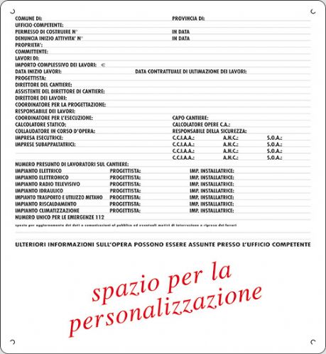 Cartello in polionda cm 98x88 cartello per concessioni edili (1 colore) con spazio pubblicizzabile