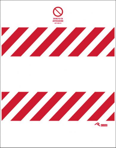 Cartello in polionda cm 180x98 recinplast con "Divieto di affissione" e fasce bianco-rosse