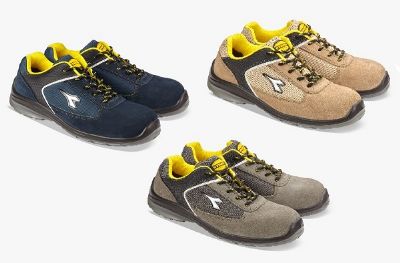 Calzatura di sicurezza bassa S1P in vitello scamosciato, nylon e PU. Puntale multilayer 200J. Calzata 11. K SOLE, plantare estraibile in poliuretano con absorber. Metal free.