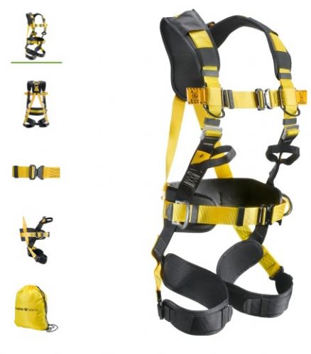 Imbracatura anticaduta professionale con punti di attacco dorsale e sternale, cosciali e spallacci imbottiti ed ergonomici, per garantire un eccellente livello di comfort. La cintura di posizionamento sul lavoro ampia, semirigida, leggera e confortevole, dotata di due anelli di attacco laterali, per assicurare un'eccellente stabilità alloperatore sulla propria postazione di lavoro, permettendogli di operare in condizioni di massimo comfort, in appoggio sui piedi, con le mani libere. E' dotata di due anelli portautensili al petto che permettono di appendere gli strumenti di lavoro che è necessario avere a portata di mano.