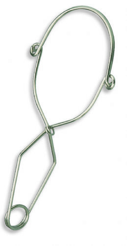 Pinza ad ampia apertura con occhiello di aggancio che facilita l'ancoraggio su strutture di grandi dimensioni.